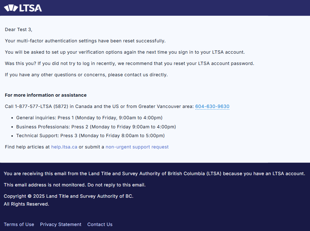 For LTSA Explorer users, please see Reset Multi-factor Authentication