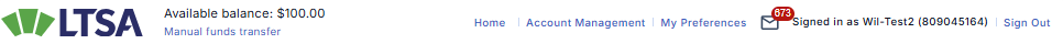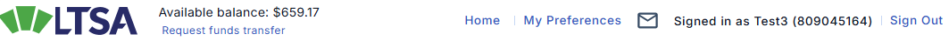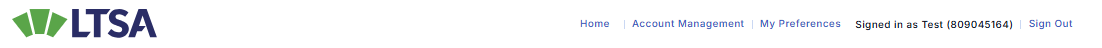 Different information corresponding to the users's permissions is displayed on the topmost navigation bar at the top of each page in the LTSA's Electronic Services - providing, as appropriate, access to Account Management, the LTSA Account Inbox, Preferences and the LTSA's Electronic Services.