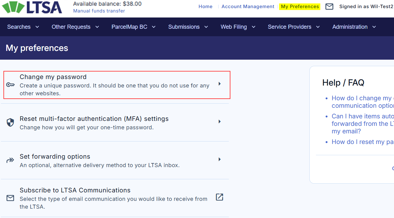 On the page, enter your LTSA username and click Request password reset.