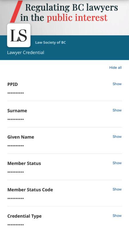 - If the scan is successful, the Law Society of BC will send you a Credential Offer